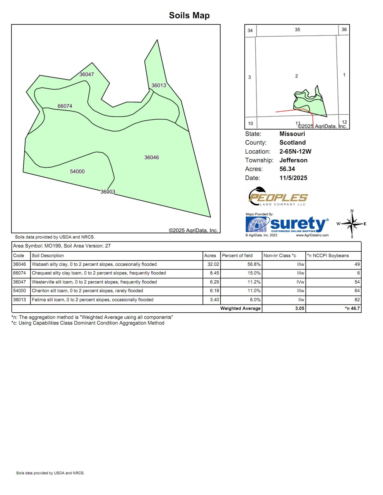 Tract 2: 50± acres with approximately 49 tillable acres (?99% tillable). High-quality soils including Wabash, Chequest, and Chariton, making this a top-producing piece of farmland.