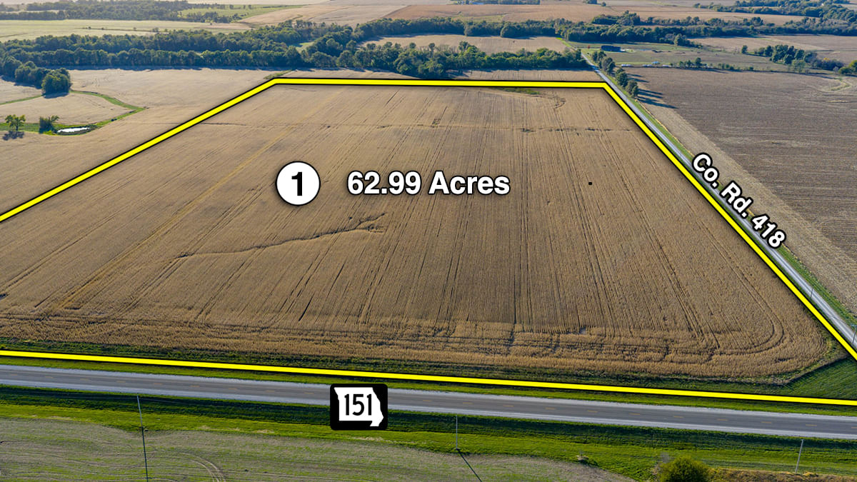 Tract 1: Consists of 62.99 surveyed acres m/l with approximately 60 FSA tillable acres m/l making it 96% tillable. Hashighway frontage along Highway 151 and county road frontage along Shelby 402. Soil types consist of productive Putnam, Mexico, or Leonard soils.