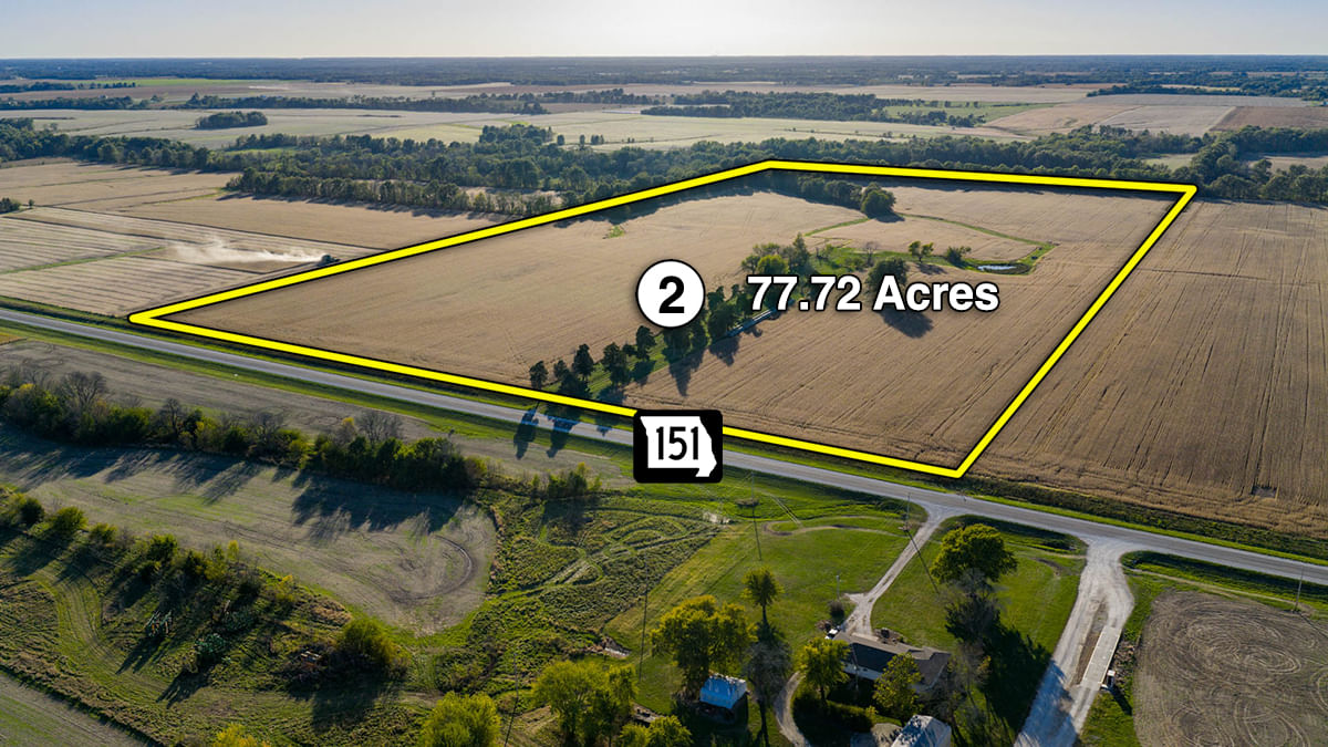 Tract 2: Consists of 77.72 surveyed acres m/l with approximately 67FSA tillable acres m/l making it 87% tillable. Has highway frontage along Highway 151 and an outstanding build site at the end of the old "Cedar Tree Lane." Soil types consist of productive Putnam, Mexico, or Leonard soils.