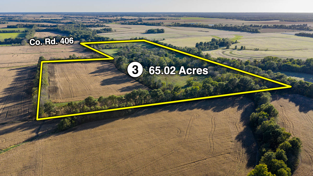 Tract 3: Consists of 65.02 surveyed acres m/l with approximately 13FSA tillable acres m/l and the remainder in grass and timber. Has road frontage along Shelby 406 and is set up for the perfect recreational or livestock tract. Soil types consist of Armstrong or Arbela soils.