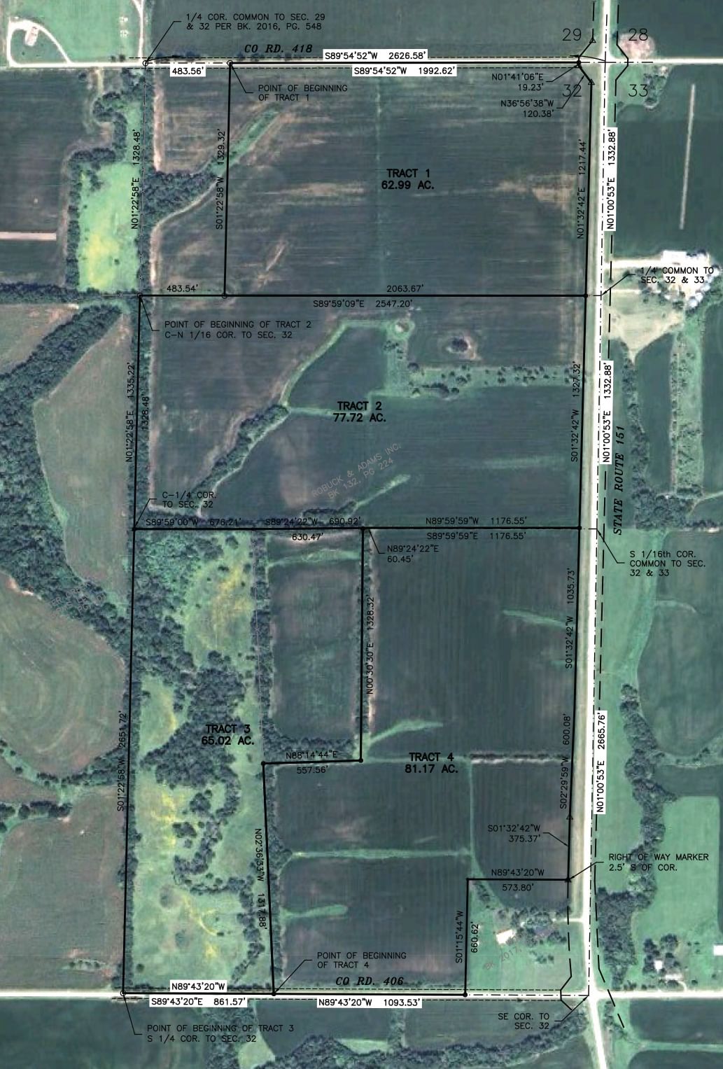 Peoples Land Co, LLC is excited to offer for sale at public auction, the locally known "Robuck and Adams Inc. Farm." The sale will be held at the Clarence VFW hall located at 89 North Shelby St., Clarence, MO 63437 on December 4, 2025 at 6:00 P.M. The property is located south of Clarence, MO approximately 3.5 miles along Highway 151. This farm has been under the same ownership for many years and is one of the best this area has to offer. The farm offers all buyers the opportunity to purchase highly tillable land with top productive soils in the perfect location along with a phenomenal grass/recreational tract as well. The layout of the tracts for this farm are perfect to expand a farming operation, investment portfolio, build a forever home, or own a highly sought after piece of land in a great area. The farm will be sold using the buyer's choice method in six tracts consisting of the following